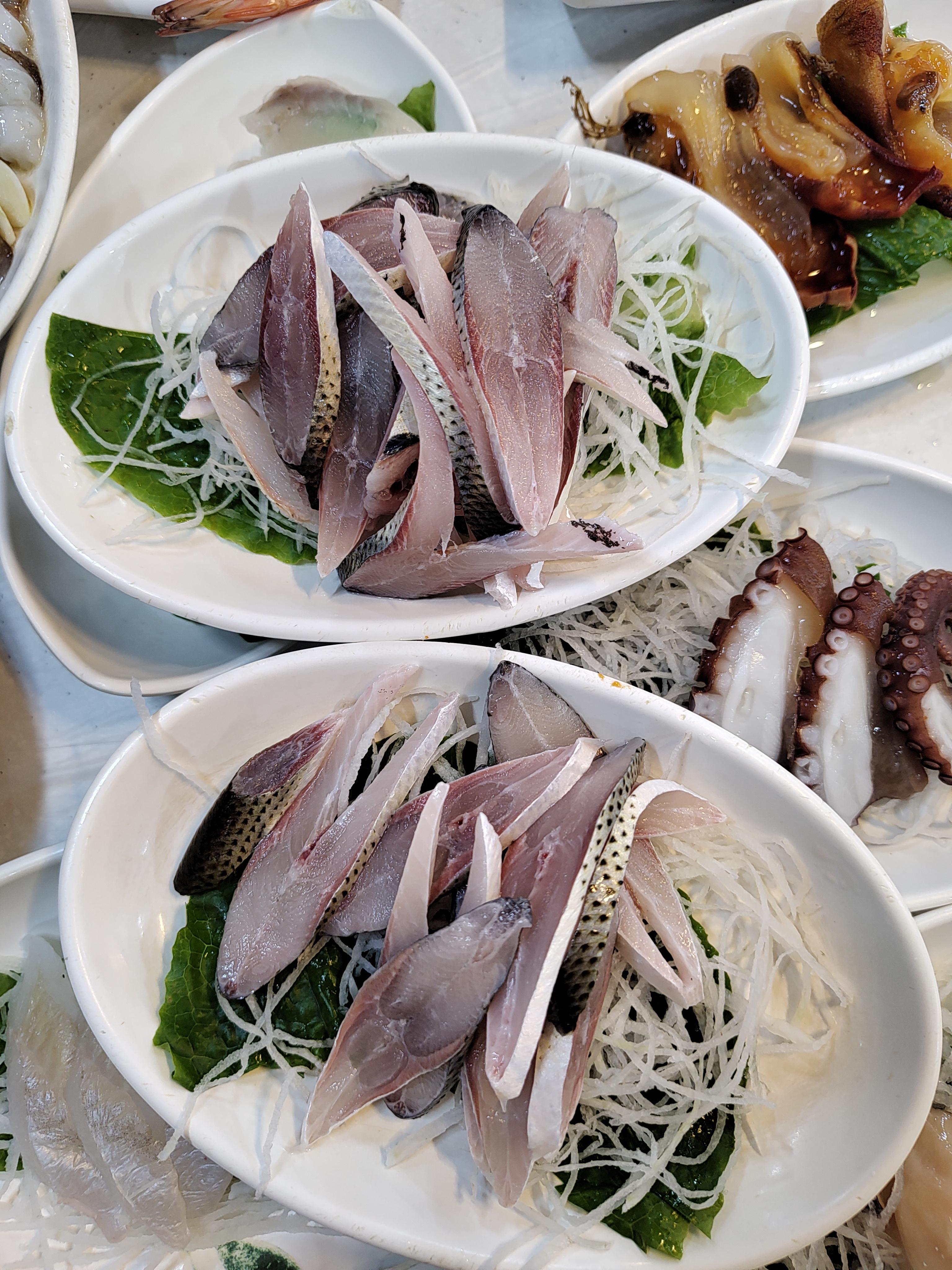 대가선에는 수산물시장이있어서 거기서도 회를 먹을 수 있는데